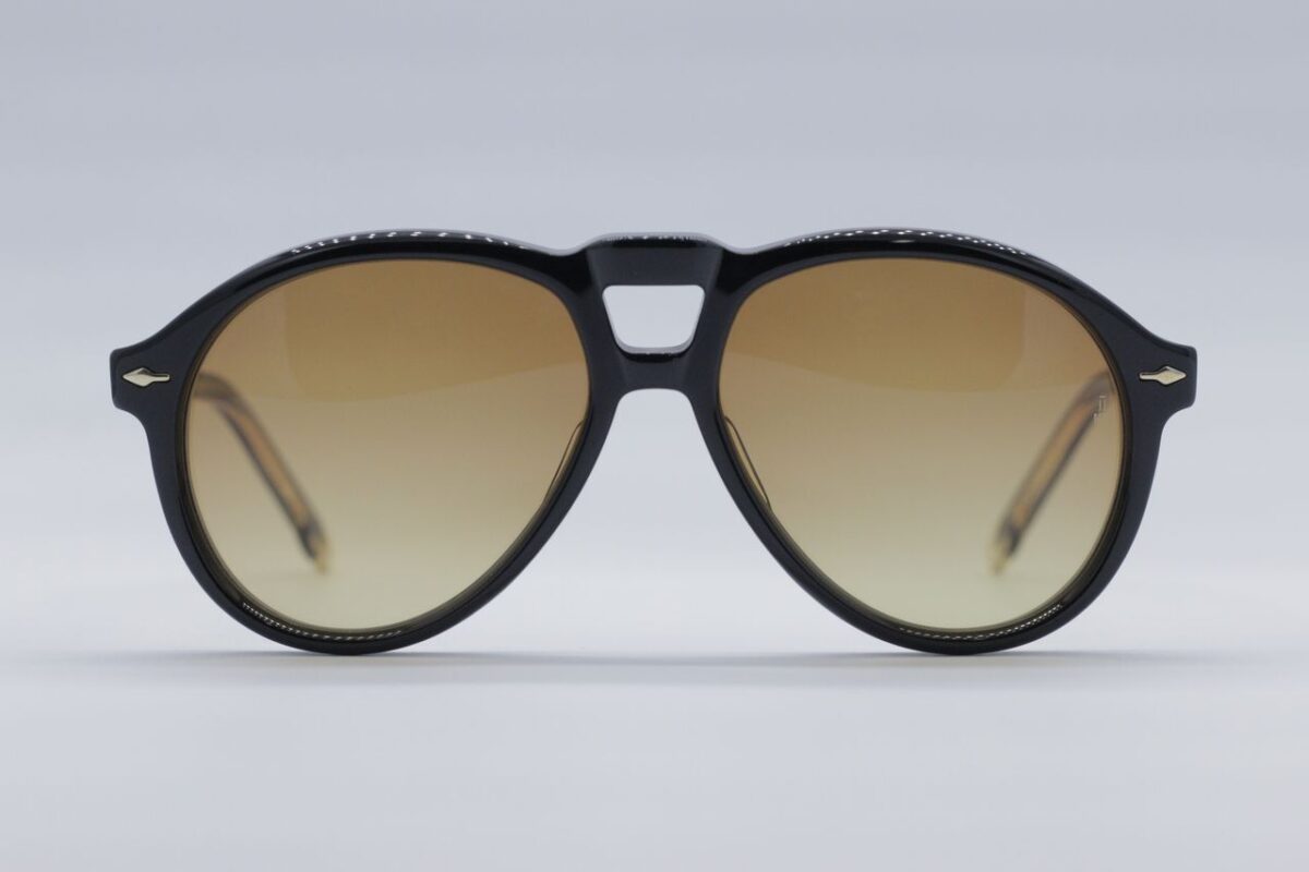 The Valkyrie in Beluga by Jacques Marie Mage is an oversized, ’80s-inspired aviator that effortlessly combines bold design with sculptural details, making it the perfect eyewear choice for those seeking a distinctive, fashion-forward look. Designed with a rolling brow line and sculptural double-bridge details, these eyeglasses provide a unique silhouette that commands attention while offering exceptional comfort and fit. Especially favourable for larger faces, the Valkyrie in Beluga combines oversized proportions with luxurious craftsmanship, ensuring both a striking appearance and a comfortable wear. The Beluga colourway enhances its bold aesthetic, offering a versatile, yet standout look that’s perfect for those who want to make a statement. COLOUR: BLACK